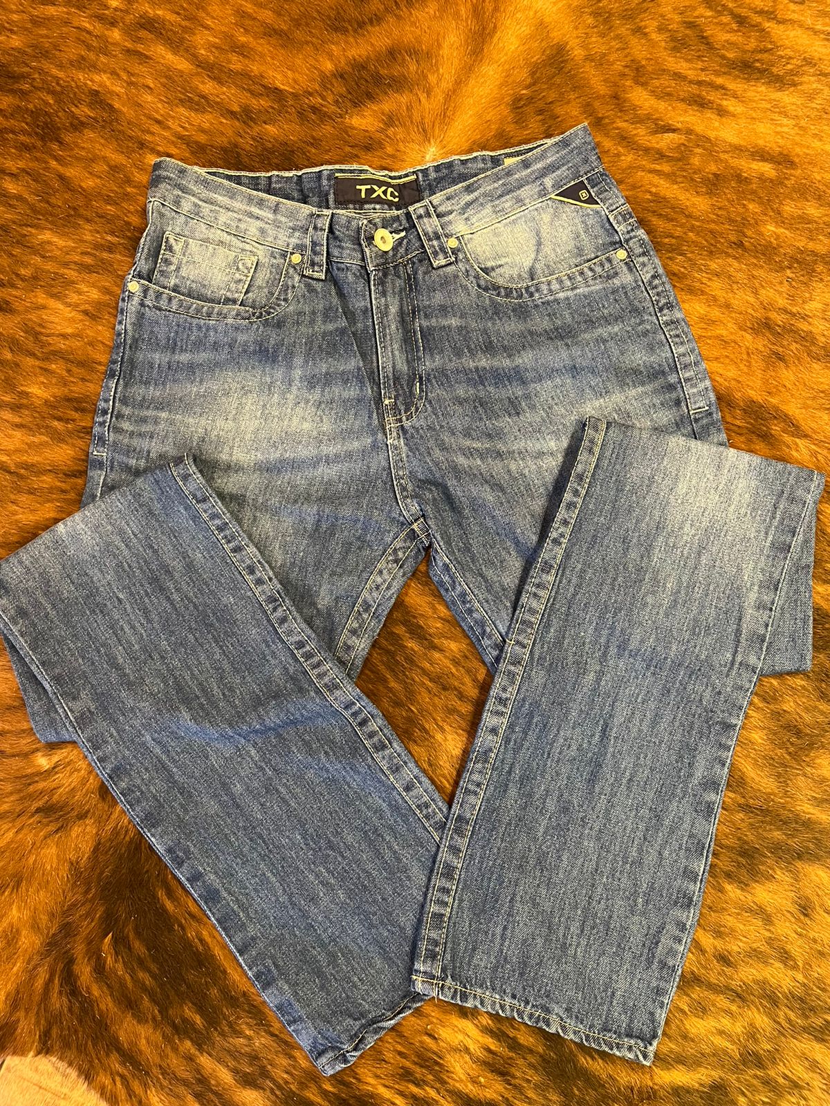 Cós alto no lugar e boca tradicional, pernas regulares ideal para usar com botas.