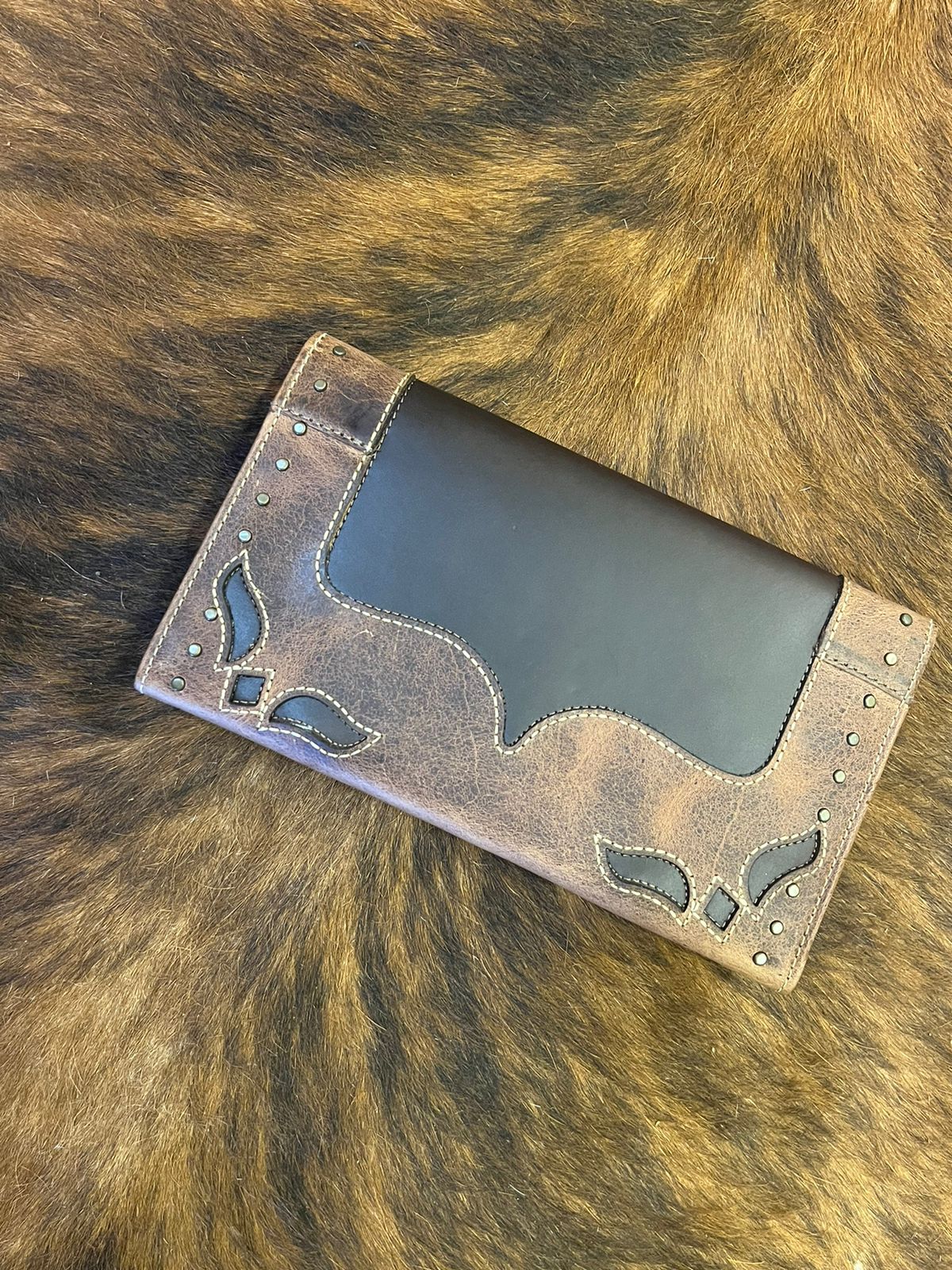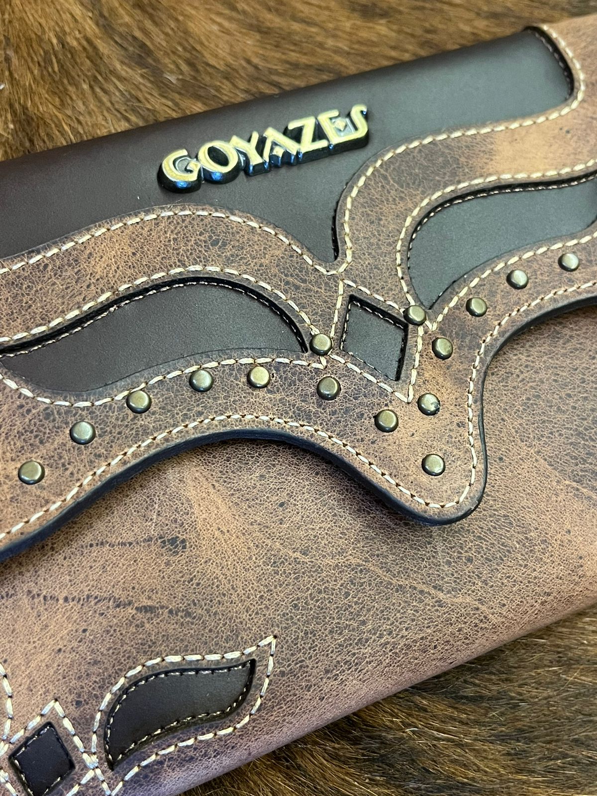 – Possui detalhe frontal em couro cru (pode variar conforme a parte do couro utilizado), contornado por detalhe em couro Mustang Terra.
