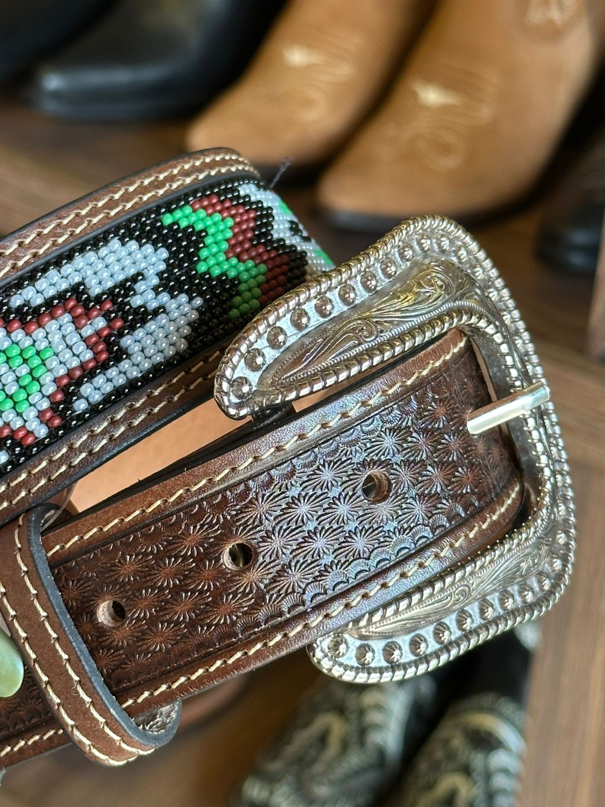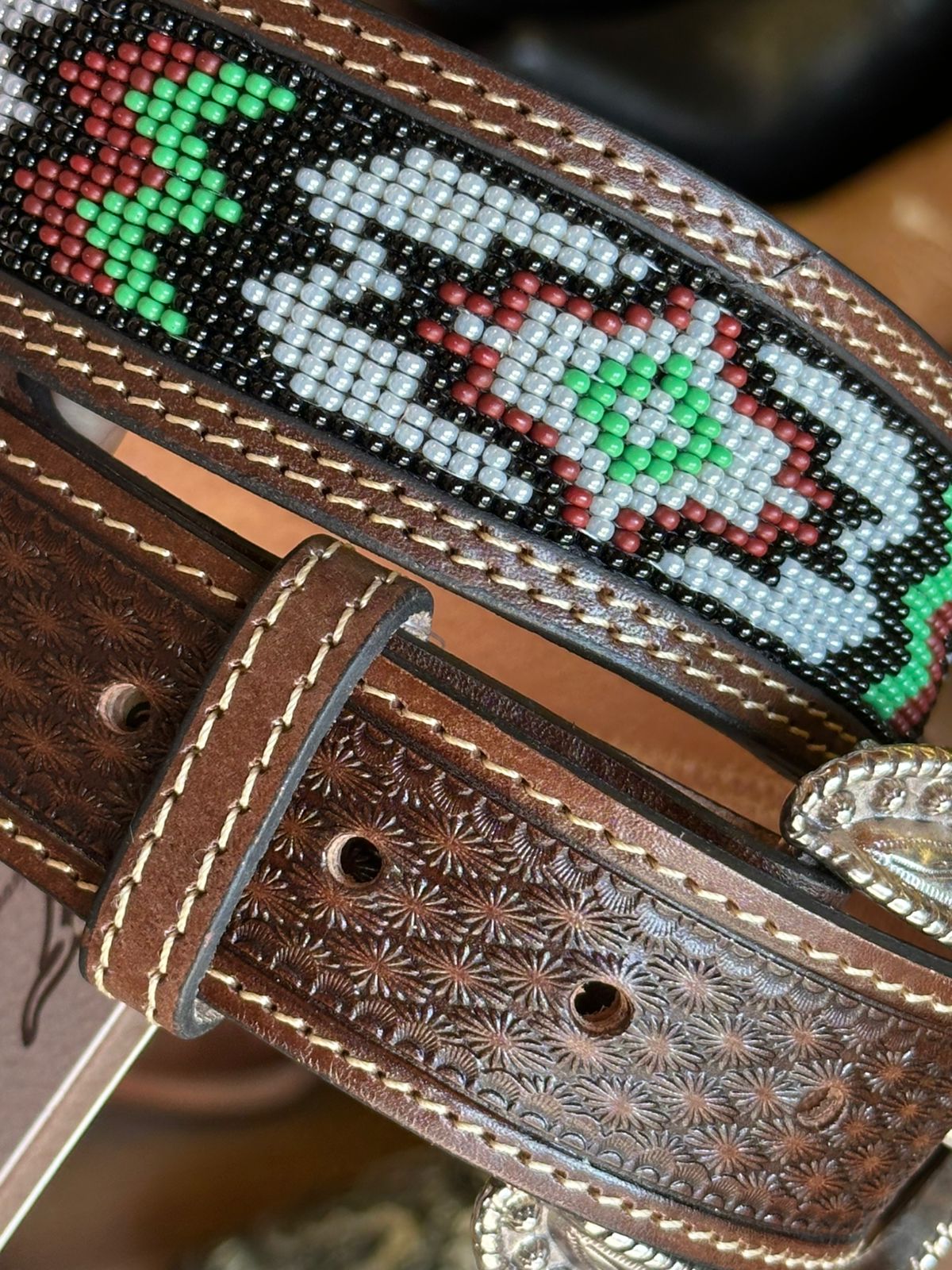 Cinto Masculino 351 Miçangas Paul Western VERDE / BORDO