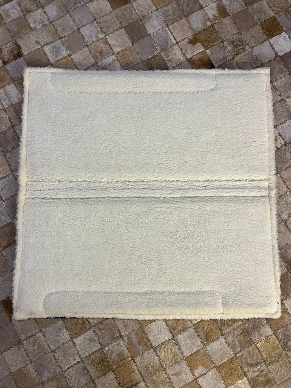 Fabricada em algodão trançado na parte externa com estampa navajo nas cores Preto, Azul e Branco. Revestimento em algodão pelúcia com reforço em couro nas laterais.