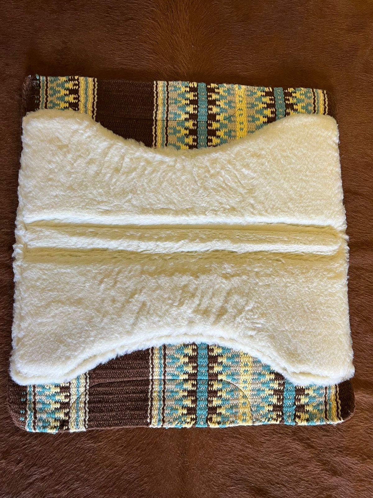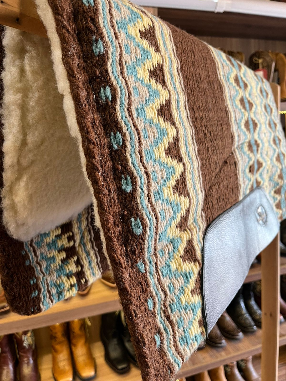 Manta Navajo Boots Horse Curvada 30×32 Marrom/Azul claro/Amarelo Cód. 9039