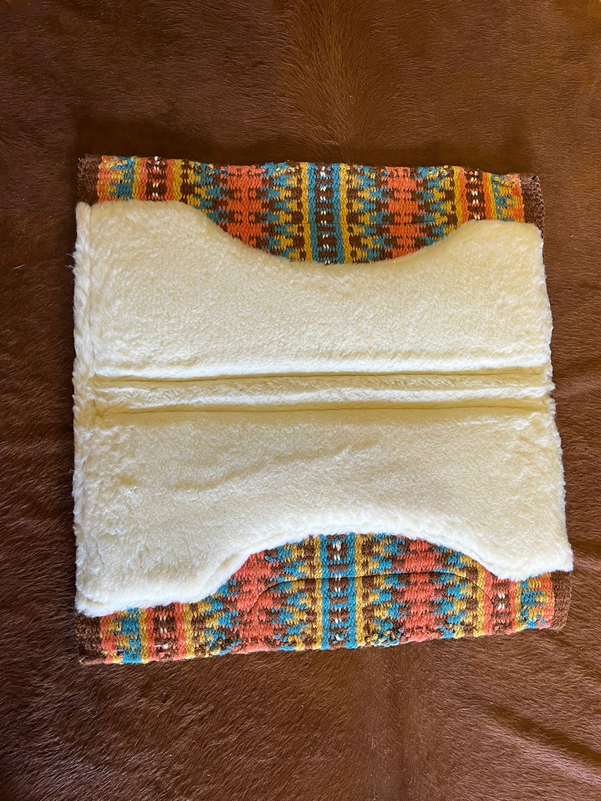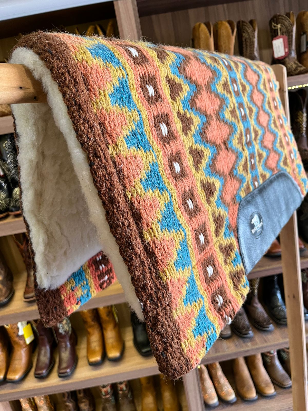 Manta Navajo Boots Horse Curvada 30×32 Salmão/Marrom/Azul Cód. 9039