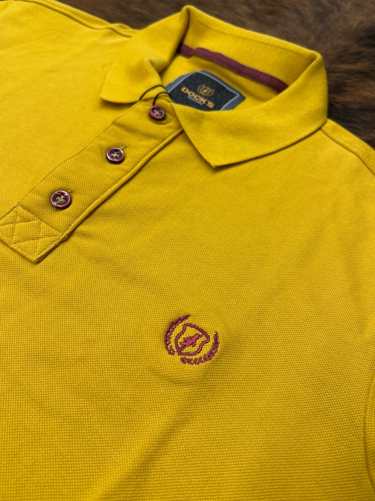 Construção: 100% algodão, gola polo com fechamento por botões tradicionais, logo Dock´s bordado em vinho